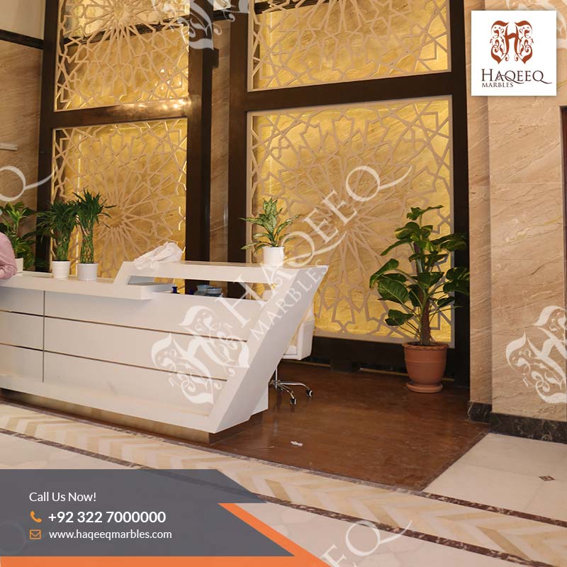 It is a huge recreational place that has been designed by Pakistan’s ICONIC architects Mr. Raees Faheem and Mr. Shahzad Mir, however fabricated and executed by Haqeeq Marbles solely without sharing of any other supplier. We are quite capable of handling mega projects like this. External walls cladding, internal walls cladding, main entrance façade, flooring, serving area, galleries, stairs, landscaping and sprinkling area contains home décor items/ products fabricated by Haqeeq Marbles of Marble and Granite tiles, water jet inlay, mosaic, carving, glass mosaic and CNC carved panels.