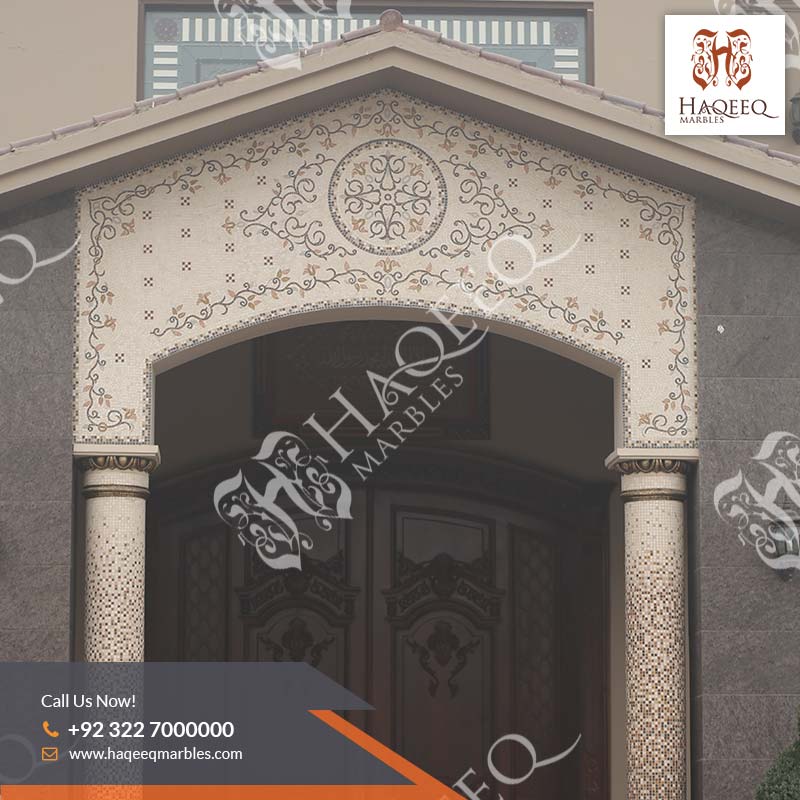 Mr. Farhan Sarwar’s home is a 5 houses replica project within a single premises and good example of our above said services right from the front pillars of main entrance, beautiful mosaic pattern on façade mesmerizes the viewer. Entrance lobby is decorated with mosaic spiral pattern.